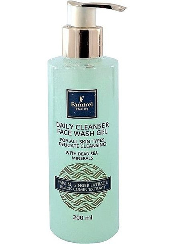 Гель для вмивання обличчя Famirel з мінералами Мертвого моря та папаїном, для всіх типів шкіри. -Ніжний гель для щоденного вмивання з мінералами Мертвого моря від Famirel – це ідеальний продукт для щоденного догляду за шкірою. Цей гель має кератолітичний ефект, що допомагає м'яко відлущувати відмерлі клітини, призводячи до здорового кольору та стану шкіри. -Фермент папаїн, який допомагає усувати гіперкератоз (зайвий наріст відмерлих клітин), висвітлює пігментацію, виявляє протимікробну дію та вирівнює тон та рельєф шкіри. -Екстракти алое та огірка забезпечують вологе та пом'якшене очищення. -Екстракти ромашки, імбиру та насіння чорного кмину створюють антибактеріальний ефект, запобігаючи розвитку бактерій та утворенню запальних процесів. -Гліцерин зволожує та пом'якшує шкіру. -Екстракт імбиру знімає запалення, регулює вироблення себуму та стягує пори. -Екстракт насіння чорного кмину нормалізує роботу сальних залоз, матує шкіру та чинить антиоксидантний ефект. -Вітамін Е - антиоксидант, що захищає від фотостаріння шкіри і знімає подразнення. -Масло авокадо відновлює ліпідний бар'єр шкіри та випромінює колір обличчя. -Мінерали Мертвого моря омолоджують та забезпечують природне зволоження. Paraben free Гель для Умивання Особи Famirel з Мінералами Мертвого Моря та Папаїном - це надійний засіб для догляду за шкірою, який поєднує в собі зволоження, харчування, омолодження та м'яке очищення. Виберіть цей продукт, і ваша шкіра буде вдячною, сяючою та здоровою. Приділяйте увагу шкірі за допомогою Famirel! No SLS.