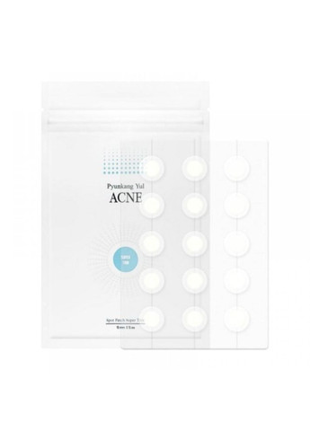 Загоюючі патчі проти акне та запалень Pyunkang Yul Acne Spot Patch Super Thin усувають висипання, не залишаючи почервоніння і не провокуючи лущення. Гідроколоїдні патчі прискорюють процеси загоєння, надають антибактеріальну дію та знімають свербіж та неприємні відчуття. Локальні патчі допомагають боротися з точковими висипаннями, перешкоджають появі застійних плям та вирівнюють тон. Залежно від стадії розвитку прищика, наклейки можуть повністю погасити запальний процес або прискорити дозрівання гнійничка. Подвійна наклейка в центрі виконана з гідроколоїду - особливого матеріалу, просоченого антибактеріальним розчином, який витягує зі шкіри токсини та забруднення, прискорюючи загоєння прищика. З зовнішнього боку наклейка оточена прозорою плівкою, яка щільно фіксує продукт, не дає йому зміститися під час використання та захищає від потрапляння вологи. Прозорі патчі щільно тримаються на шкірі та майже непомітні при нанесенні. Завдяки особливій перфорації патчі легко відклеїти від листа-основи, не торкаючись пальцями внутрішньої сторони, таким чином уникаючи попадання бактерій. Підходять для жирної та проблемної шкіри.