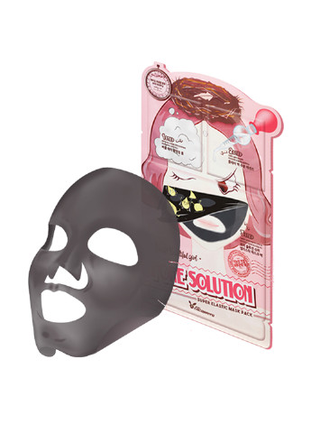 маска складається з трьох "відділень": упаковка кожної маски містить пінку для очищення шкіри, живильну сироватку і тканинну маску. Застосовувати дуже зручно і кожен наступний крок посилює ефект попереднього, тому такий догляд має значно більш вражаючі результати. Маска Pore Solution Super Elastic вирішує дві основні проблеми - вона робить пори менш помітними, регулює вироблення шкірного сала і значно покращує еластичність шкіри в цілому, не тільки часу. У складі порошок з деревного вугілля, відповідно, маска з тканини чорного кольору. Маска містить льодовикову і мінеральну воду, а також ніанцінамід, він же вітамін В3, який значно покращує бар'єрну функцію, тонус і текстуру шкіри і допомагає видалити пігментацію. Крім цього в складі гіалуронова і поліглутаміновая кислота для сильного зволоження і екстракт рожевої водорості жанія Рубенс, поліпшує проникнення вологи і сприяє її утриманню в клітинах. За поживний і антіейдж ефект відповідають екстракт насіння Чіа, зеленого чаю, ласточкиного гнізда і аденозин, який відомий перш за все своєю здатністю впливати на виробництво власного еластину і колагену в клітинах шкіри, сповільнюючи процеси старіння. Застосування: 1 крок - вмитися очищає пінкою. 2 крок - нанести живильну, зволожуючу сироватку. 3 крок - нанести тканинну маску на 10-20 хвилин, після чого маску зняти і дати вбратися залишкам есенції