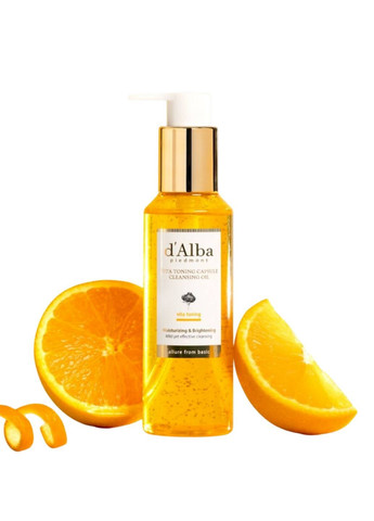 D'ALBA Vita Toning Capsule Cleansing Oil — інноваційна двокомпонентна очищувальна олія з вітамінними капсулами, яка не лише ефективно видаляє забруднення та макіяж, а й тонізує, освітлює і зволожує шкіру вже на етапі очищення. Формула поєднує масляну основу з капсулами чистого вітаміну C (99%) та глутатіону (98%), які активно борються з тьмяністю, вирівнюють тон шкіри та забезпечують антиоксидантний захист. Завдяки вмісту олії жожоба, яка за структурою схожа на себум, засіб глибоко очищує пори, ефективно розчиняє чорні точки та залишки макіяжу. Унікальна технологія пудрового ензимного очищення сприяє м’якому, але глибокому очищенню без подразнень. Олія моментально емульгується при контакті з водою, не залишаючи жирної плівки та не потребує повторного вмивання. Ваша шкіра залишається ідеально чистою, свіжою, зволоженою та сяючою. До складу входить золотий баланс 8 видів натуральних зволожувальних олій, у тому числі олії макадамії, авокадо, камелії, шипшини, аргани, соняшника та інші рослинні екстракти. Продукт збагачено екстрактом білого трюфеля, що має потужну регенераційну та антивікову дію. Олія пройшла дерматологічні тести на чутливість шкіри, має гіпоалергенну формулу, не містить агресивних компонентів, підходить навіть для чутливої шкіри. Продукт веганський та сертифікований, без тестування на тваринах. Основні переваги: Очищення, тонізація та догляд в одному етапі Вітамінні капсули з вітаміном C (99%) та глутатіоном (98%) Легко видаляє макіяж, SPF, себум, чорні точки Шовковиста текстура, що плавно розподіляється по шкірі Швидка емульгація — без жирності та залишків Комплекс 8 зволожувальних олій та екстракт білого трюфеля Підходить для щоденного використання, навіть на чутливій шкірі Веганська та дерматологічно протестована формула Спосіб застосування: Нанесіть невелику кількість олії на суху шкіру обличчя. Легкими масажними рухами розподіліть засіб по всій поверхні обличчя, приділяючи увагу зонам з макіяжем або забрудненнями. Змочіть руки водою і продовжуйте масаж до утворення легкої емульсії. Потім ретельно змийте теплою водою. Повторне очищення не потрібне. Обʼєм: 150 мл