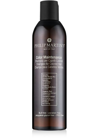 Власниці фарбованого волосся знають, що без спеціальних засобів для догляду за ними ніяк не обійтися. Адже такі косметичні продукти не лише очищають та пом’якшують кучері, вони також зберігають насиченість і яскравість обраного відтінку максимально довго. Майстри італійського бренда Philip Martin’s підібрали найбільш підхожі для забарвлених пасом інгредієнти та створили дієву формулу, яка ефективно і м’яко піклується про них. Шампунь для фарбованого волосся від Philip Martin’s призначений для відновлення і пожвавлення кольору. Він дарує блиск і шовковистість, перешкоджає вимиванню фарбувального пігменту. Підтримує оптимальний баланс шкіри голови, дарує комфортні відчуття. Після освіжального впливу Philip Martin’s Colour Maintenance Shampoo волосся буде оповите ніжним ароматним шлейфом м’яти і вербени. Спосіб застосування: нанесіть на волосся і шкіру голови, добре спіньте, потім ретельно промийте водою. За потреби нанесіть двічі.