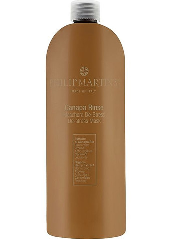 Отримайте моментальне оздоровлення і розкішний блиск волосся з маскою від бренда Philip Martin's. Цей відновлювальний засіб дарує не тільки дикий аромат, який знімає стрес, але й справжню ароматерапію, яка поєднує користь і задоволення. Збагачений екстрактом органічних конопель, антиоксидантною силою проліна й полірувальним ефектом керамідів, Canapa Rinse De-Stress Mask забезпечує захист від окисного стресу. Особливості Philip Martin's Canapa Rinse De-Stress Mask: - стимулює ріст волосинок;- відновлює волосяні структури від коренів до кінчиків;- бореться з вільними радикалами;- захищає від шкідливого зовнішнього впливу;- проявляє протизапальні й антиоксидантні властивості;- чинить тонізувальну дію, пом’якшує волосинки, запобігає ламкості;- сприяє зволоженню шкіри голови, надає локонам візуального об’єму;- надає волосяним стрижням посиленого блиску.