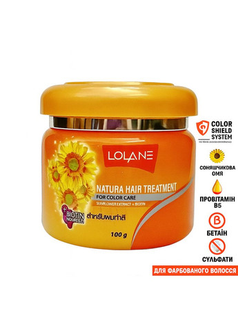 Маска для фарбованого волосся Lolane Natura – Захист кольору, 100 г — це поживна й відновлювальна маска для фарбованого, сухого та пошкодженого волосся. Містить систему Color Shield System, яка запобігає вимиванню кольору й захищає волосся від УФ-променів та вільних радикалів. Завдяки насиченій формулі з олію соняшника та провітаміном B5 маска глибоко живить, зволожує та відновлює структуру волосся після фарбування, освітлення, хімічної завивки й термоукладки. Після першого застосування волосся стає гладким, м’яким і блискучим. Переваги маски Lolane Natura: Зберігає яскравість і стійкість кольору Живить і відновлює структуру волосся Укріплює волосся від коренів до кінчиків Усуває сухість і посічені кінчики Має приємний аромат і економну витрату Дія активних компонентів: Технологія Color Shield System забезпечує ефективний захист волосся від втрати кольору й пошкоджень, особливо під час регулярного фарбування або дії сонячних променів. Олія соняшника — багате джерело вітаміну Е (у 20 разів більше, ніж в оливковій олії), а також вітамінів А, D, групи В і жирних кислот. Інтенсивно живить, захищає й відновлює волосся. Спосіб застосування: Нанесіть маску на чисте вологе волосся, рівномірно розподіліть і залиште на 10–15 хвилин. Змийте теплою водою. Використовуйте 2–3 рази на тиждень для стійкого ефекту.