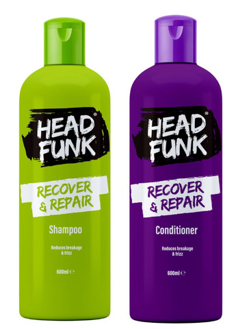 Набір для відновлення та зміцнення волосся Head Funk Recover & Repair (шампунь 600 мл + кондиціонер 600 мл) – інтенсивна система догляду для пошкодженого, слабкого та ламкого волосся, яке потребує відновлення. Шампунь м’яко очищає, не травмуючи волосся, а кондиціонер відновлює структуру, зміцнює волокна та допомагає запобігти подальшому пошкодженню. Після використання волосся стає міцнішим, еластичнішим та більш блискучим. ✔ Відновлення + зміцнення волосся ✔ Зменшує ламкість і посічені кінчики ✔ Об’єм: 600 мл + 600 мл – надовго вистачає ✔ Підходить для ослабленого, фарбованого чи термічно пошкодженого волосся ✔ Для щоденного або курсового використання Спосіб використання: Нанесіть шампунь на вологе волосся, спіньте, змийте. Потім нанесіть кондиціонер, рівномірно розподіліть, залиште на 1–2 хвилини та ретельно змийте водою.