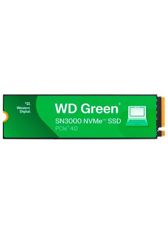 SSD-накопичувач WD Green SN3000 з інтерфейсом PCIe 4.0 забезпечує швидке завантаження, стабільну продуктивність та надійну роботу завдяки 3D NAND та ресурсам у 150 TBW.