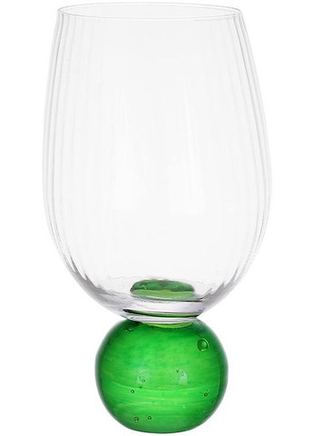 Склянки "Bauble Glass" прозоре скло з зеленою скляною ніжкою у вигляді кулі. Основа склянки рівна, що дозволяє бути стійким. Повний об'єм 450мл; висота – 15.5см. Можна мити в посудомийній машині. У наборі 6 склянок.