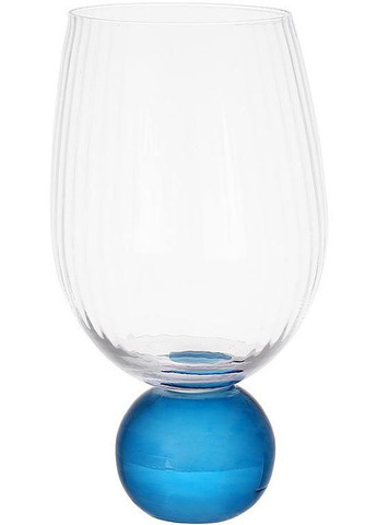 Склянки "Bauble Glass" прозоре скло з синьою скляною ніжкою у вигляді кулі. Основа склянки рівна, що дозволяє бути стійким. Повний об'єм 450мл; висота – 15.5см. Можна мити в посудомийній машині. У наборі 6 склянок.
