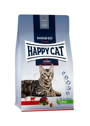 Happy Cat Culinary – це смачний та корисний раціон для вибагливих гурманів. Рецептура корму виготовлена з легкозасвоюваних та високоякісних білків. Завдяки концепції All in One Natural Life Concept® корми Happy Cat піклуються про 5 основних аспектів здоров'я кішок: серцево-судинна система, сечовивідна система, імунна система, шкіра та шерсть, травлення. Блискуча вовна Контроль за виведенням вовни Підтримка опорно-рухового апарату Підвищений вміст поліненасичених жирних кислот у кормі Happy Cat Culinary Atlantik Lachs сприяє задоволенню потреб активних кішок у харчуванні.