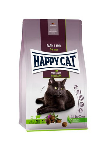 Сухий корм Happy Cat Sterilised Weide Lamm з ягнятим був спеціально розроблений для дорослих кастрованих кішок і стерилізованих кішок, адже вони мають схильність до сечокам'яної хвороби та появи надмірної ваги. рН-контроль для здоров'я сечовивідних шляхів Підвищений вміст клітковини та низький вміст жиру (10,5%) для контролю ваги DL-метіонін - речовина, що запобігає утворенню каменів Завдяки концепції All in One Natural Life Concept® корми Happy Cat піклуються про 5 основних аспектів здоров'я кішок: серцево-судинна система, сечовивідна система, імунна система, шкіра та шерсть, травлення.