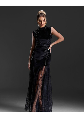Вечірня сукня-халат, виготовлена з темно-коричневого шовку з кроєм на запах. Сукня з V-подібним декольте та довгими рукавами з манжетами. Модель з втачним поясом має розкльошений низ з довжиною в підлогу. Напівобхват: Груди: S (50), M (52), L (54), XL (56), Талія: S (32-42), M (34-44), L (36-46), XL (38) -48), Стегна: S (64), M (68), L (70), XL (72), Довжина виробу - 148, Рукав - 65, Тканина: Висока еластичність.