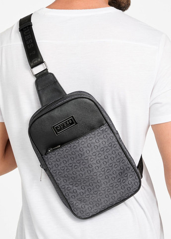 Сумка-слінг Guess. Стильна сумка-слінг від Guess ідеальна для того, щоб помістити всі ваші речі першої необхідності. Сумка виконана в поєднанні текстилю та екошкіри. Сумка з одним відділенням на блискавці. Є підкладка. Спереду одна кишеня на блискавці. На спинці сумки розташована ще одна кишеня. Текстильний регульований ремінець, який можна перестебнути на інший бік за допомогою карабіну. Сумка із принтом у вигляді монограми бренду. Спереду металевий логотип бренду. Відмінна якість.