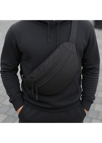 Універсальна поясна сумка Saturn дизайн без емблем та логотипів -Матеріал: oxford -Колір чорний -3 відділення на блискавці: -дві зовнішні кишені; -одна потаємна кишеня всередині; Функціональність і розміри: -довжина 31 см; -висота 16 см ; -глибина 8 см; -Регулювання довжини ременя, максимум 115 см