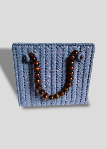 Сумочка жіноча ручної роботи виготовлена з бавовняного шнура з люрексом. Техніка роботи: вишивка по силіконовій основі. Застібка магніт. Оздоблена дерев'яними намистинами. Ручки довжиною до 50см. В середині прозора підкладка з органзи. Каркасна.