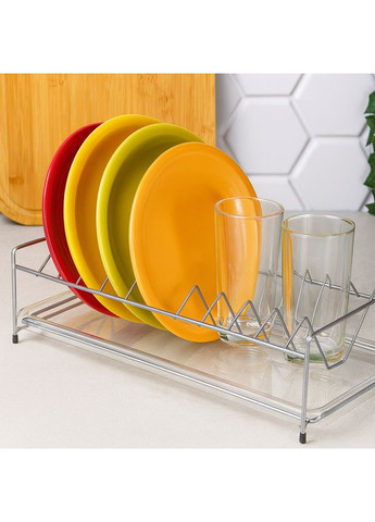 Компактна 1-ярусна сушарка для посуду Метал-Стиль — зручне рішення для невеликої кухні. Металева конструкція з хромованим покриттям стійка до вологи та легко миється. Піддон збирає воду, що стікає, зберігаючи стільницю сухою та чистою. Сушарка вміщує тарілки, блюдця та кришки, допомагаючи підтримувати порядок на кухні. Розмір 39×19 см дозволяє зручно розмістити аксесуар навіть у невеликому просторі. Характеристики: • Тип: сушарка для посуду настільна • Матеріал: сталь, композит • Покриття: хром • Розмір: 39×19×10 см • Особливості: з піддоном • Вага: 0,55 кг • Країна виробництва: Україна