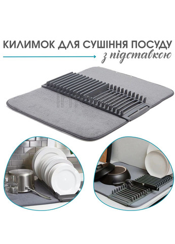 Килимок для сушіння посуду з підставкою – функціональний аксесуар стане незамінним помічником на вашій кухні. Завдяки поєднанню поглинаючих матеріалів та зручної підставки, килимок забезпечить швидке сушіння посуду та збереже сухість вашої робочої поверхні та шаф. Килимок можна прати в пральній машині, тому він залишиться свіжим та гігієнічним після кожного використання. Це практичне рішення для будь-якої кухні, що поєднує комфорт, функціональність та стиль. Особливості: Розмір килимка: 60х45 см; Розмір підставки: 43х17 см; Матріал килимка: мікрофібра; Матеріал підставки: пластик.
