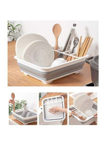 Сушарка для посуду Multi-Function Drain Rack 511 LS Силіконова складана з нековзними ніжками біла Сушарка для посуду впишеться навіть у невеликий простір і підкреслить вишуканий стиль господині. Легка та стійка завдяки нековзним ніжкам, сушарка дасть змогу зручно розташувати мокрі тарілки та столове приладдя недалеко від раковини, а після розставити все на свої місця. Після використання складіть сушарку, щоб заощадити простір на кухні.Благодаря спеціальним зубцям можна розміщувати на ній тарілки, чашки, миски в будь-якій комбінації. Плюс у комплекті йде спеціальна підставка для столового приладдя. вода, що стікає з посуду, відводиться в спеціальний піддон, просто розмістіть сушарку поруч із раковиною. Завдяки нековзній основі вона займе своє місце на робочому столі та стане чудовим помічником. Характеристика: Тип: сушарка для посуду; Матеріал: силікон; Одноярусна; Колір: білий. Розміри: 37 см х 31 см х 12.5 см Комплектація: Сушарка — 1 шт.; Паковання.