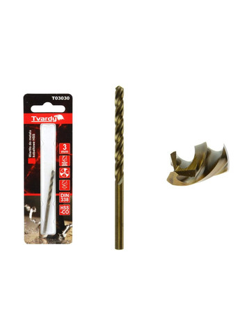 Золотисто-чорні свердла по металу, виготовлені зі швидкорізальної сталі 4341 HSS, покриті покриттям TiN (нітрид титану). Свердла згідно DIN 338. Циліндричний тримач. Свердла призначені для виконання наскрізних і глухих отворів. Вони мають два центральні леза, заточені під кутом 135°, і канавки, які ефективно видаляють стружку в отвір. Свердла, покриті шаром TiN, призначені спеціально для обробки матеріалів, які важко різати. Застосування покриття TiN підвищує твердість свердла, прискорює процес різання і дозволяє підвищити якість оброблених елементів. Шар нітриду титану, завдяки зниженню сили тертя, зменшує знос леза і тим самим продовжує термін служби свердла. Свердла були упаковані в пластиковий контейнер з отвором для підвішування на гачок. Характеристики продукту: свердло з швидкорізальної сталі HHS 4341 покритий покриттям TiN (нітрид титану) дуже добре видаляє викопаний матеріал завдяки полірованій спіралі 2-градусний наконечник, заточений під кутом 135° ідеально відшліфована ріжуча кромка Технічні характеристики: Сталь: HSS 4341 Покриття: TiN Розмір: 3,20 мм Верх: 2 градуси, ґрунт під кутом 135° Хвостовик: циліндричний