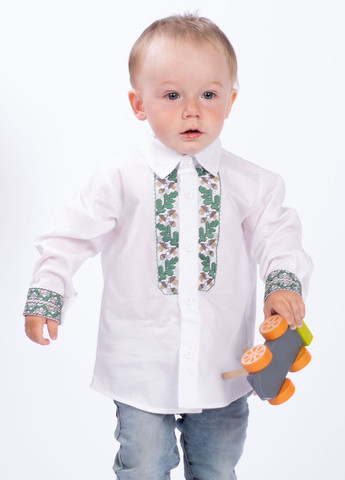 Колір: Білий Вишивка: Зелена Ми створили ідеальну вишиванку для наймолодших. Вона поєднує все найкраще – ніжні волокна бавовни, зручний крій та стильну вишивку. Ваш малюк почуватиметься комфортно та бездоганно. Сорочка виконана прямим силуетом, що не сковує рухів під час активності, має практичний та елегантний відкладний комір, планку з гудзиками на пілочці та таку ж застібку на манжетах. Родзинкою виробу є унікальна вишивка, яка гармонійно вимальовується на білосніжному тлі. Зробіть приємний подарунок вашому хлопчику, адже це важливий крок, який зароджує любов до традицій з раннього дитинства.
