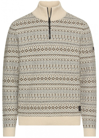 Светр knitted Troyer з вовни поєднує традиційний дизайн і сучасний комфорт. Завдяки натуральному складу він відмінно регулює температуру тіла: в холодну пору дарує приємне тепло, а в теплі дні забезпечує відчуття свіжості та прохолоди. Ця властивість робить модель універсальною для будь-якої пори року, надаючи відчуття максимального комфорту за різних умов. Довгі рукави та високий комір із застібкою-напівблискавкою надають функціональності, дозволяючи змінювати стиль та ступінь захисту від вітру та прохолоди. Ребристі манжети та нижній край забезпечують надійну посадку, зберігаючи форму навіть після активного використання. Особливої виразності светра надає принт, розташований по всій поверхні, що створює динамічний і сучасний вигляд. Це поєднання класичного силуету з оригінальним дизайном робить светр чудовим вибором як для повсякденного використання, так і для особливих моментів, коли хочеться виглядати стильно та комфортно.