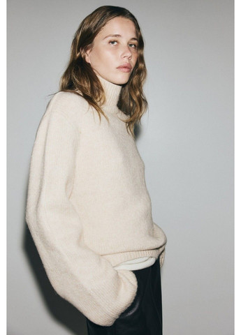 Об'ємний светр з м'якої в'язки. Він має високий ребристий комір зі шлицею ззаду та рукави реглан з відкритими швами. Ребристі манжети та поділ. Довжина: довгий Довжина рукава: Довгий рукав Зсув: Збільшений розмір Шия: Щільно прилягаючий комір-стійка Стиль рукава: рукав реглан опис: Світло-бежевий, звичайний СКЛАД Поліестер 64%, Акрил 30%, шерсть 6%