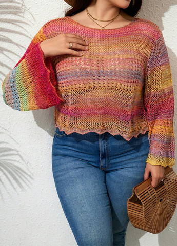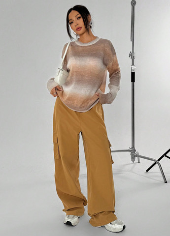 Жіночий приталений светр Modelyn із розкльошеними рукавами градієнтного забарвлення. Цей светр із круглим вирізом та довгими розкльошеними рукавами має асиметричний поділ. Светр облягаючого крою. Він підходить як для вечірніх виходів, так і для повсякденного носіння. Тканина середньої еластичності. Тільки ручне прання.
