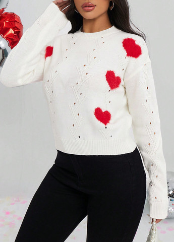Колір Білий / Фасон Джемпер / Візерунок Сердечка / Стиль Кежуал / Довжина рукава Довгий