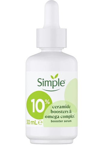 Інноваційний догляд для глибокого живлення шкіри! Simple Ceramide Boosters & Omega Complex Booster Serum — це потужний бустер для відновлення клітин. Завдяки високій концентрації активних компонентів засіб миттєво заспокоює, глибоко живить і допомагає зміцнити бар’єр шкіри, залишаючи її гладенькою, зволоженою та сяйною. Переваги продукту Помітне зволоження, гладкість і здоровий вигляд шкіри. Відновлення бар’єру і глибоке живлення. Легка консистенція без липкості. 98 % компонентів природного походження, на 99,7 % біорозкладна формула. Безпечний склад без агресивних хімічних речовин, етилового спирту, мінеральних олій, барвників і віддушок. Засіб швидко всотується, підходить для всіх типів шкіри, зокрема чутливої. Як діє? Завдяки 2,5 % церамід бустерів засіб допомагає відновити шкіру зсередини, зміцнюючи її природний захисний бар’єр. Омега-комплекс (7,5 %) заспокоює, зволожує та підтримує рівень вологи. 1% ніацинамід (вітамін B3) м’яко вирівнює текстуру шкіри, робить її більш пружною та здоровою на вигляд.
