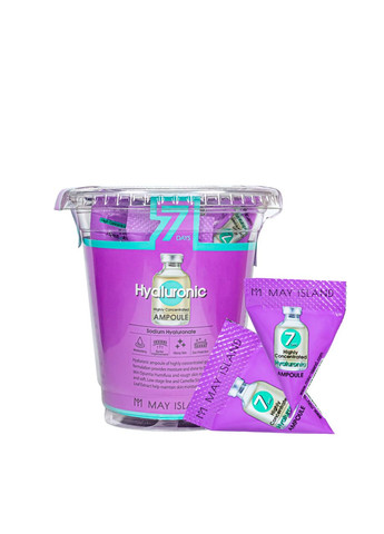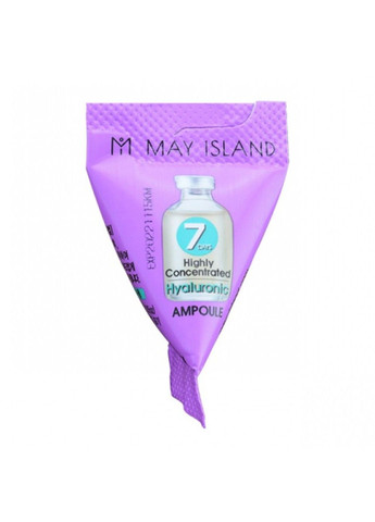Сироватка з гіалуроновою кислотою May Island 7 Days Highly Concentrated Hyaluronic Ampoule, 3 мл Сироватка у зручній пірамідці має помітний омолоджувальний ефект. Завдяки гіалуроновій кислоті у складі, сироватка живить та зволожує шкіру, роблячи її більш пружною, підтягнутою та бархатистою. Підходить для зневодненої та виснаженої шкіри. Властивості: насичує клітини епідермісу живильною вологою усуває лущення, відчуття стягнутості та свербіння має легку текстуру, не забиває пори містить високу концентрацію гіалуронової кислоти, яка надає омолоджувальну та зволожувальну дію стимулює вироблення спеціальних білків, що відповідають за пружність та еластичність шкірного покриву допомагає розгладити мікрорельєф шкіри шкіра не має неприємної липкості і жирного блиску шкіра приходить в тонус, стає більш пружною, еластичною та сяючою Склад: гіалуронова кислота Застосування Нанести на очищену та тонізовану шкіру обличчя, шиї та декольте легкими масажними рухами.