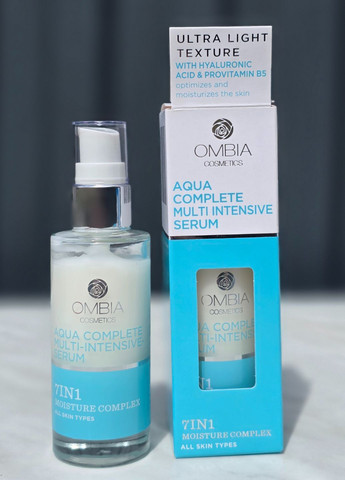 Інтенсивна зволожуюча сироватка для обличчя Ombia Aqua Complete Multi-Intensive Serum 7in1 — високоефективний доглядовий засіб для глибокого зволоження та відновлення шкіри. Формула з гіалуроновою кислотою, пантенолом та провітаміном B5 забезпечує інтенсивне живлення, покращує еластичність і надає шкірі здорового сяйва. Підходить для всіх типів шкіри, особливо сухої та зневодненої. ✅ Переваги: -7-в-1 дія: зволожує, живить, відновлює, пом'якшує, розгладжує, тонізує та освіжає -Містить гіалуронову кислоту для глибокого зволоження -Зменшує сухість і стягнутість шкіри -Робить шкіру гладенькою, еластичною та сяючою -Підходить як основа під макіяж -Легка текстура, швидко вбирається без жирного блиску 💡 Спосіб використання: Нанесіть кілька крапель сироватки на очищену шкіру обличчя та шиї. Легко розподіліть масажними рухами до повного вбирання. Використовуйте вранці та ввечері перед нанесенням крему.