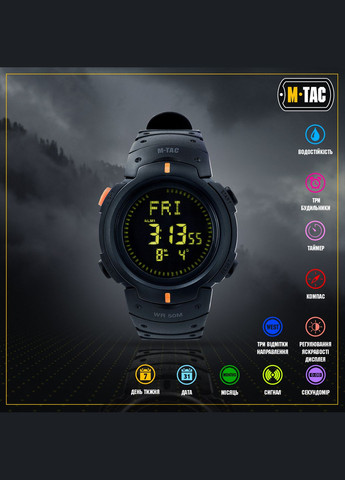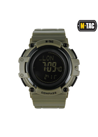 Бренд М-Тас випустив новий ГОДИННИК ТАКТИЧНИЙ 2037, який стане чудовим доповненням до вашого комплекту спорядження. Дана модель наручного годинника має широкий функціонал: LED-підсвітка, секундомір, таймер, компас, будильник тощо (детальніше про вбудовані функції ви можете дізнатись завдяки “Інструкції з експлуатації”, яка йде в комплекті). Корпус годинника виконаний з ABS та TPU пластику. Пластик типу ABS - це ударостійкий і надійний полімер, основними перевагами якого - є стійкість до будь-яких фізичних пошкоджень, впливу вологи та високих температур. TPU пластик, в свою чергу, відрізняється гнучкістю, міцністю та довговічністю. Задня кришка годинника виготовлена зі сталі. На ній нанесені маркування: WATER RESISTAN 5ATM та BATTERY CODE CR2032. Перше маркування означає, що годинник є водостійким, а показник 5ATM - вказує на тиск, який застосовувався під час тестування виробу. Годинники з даним показником не бояться потрапляння вологи: з ними можна занурюватись під воду не більш ніж на 1 метр (при використанні годинника у вологому середовищі, або ж під водою, не можна натискати на кнопки, щоб уникнути розгерметизації корпусу). Маркування BATTERY CODE CR2032 вказує на вид батарейок, які слід використовувати у даній моделі годинників. Ремінці годинника (загальною довжиною в застібнутому стані 17,5 см) оснащенні сталевою пряжкою. На правому ремінці знаходиться спеціальний фіксатор, задачею якого - є фіксація лівого ремінця при застібанні. Матеріал корпусу: ABS та TPU пластик; Матеріал ремінця: TPU пластик; Матеріал задньої кришки: Сталь; Матеріал захисту циферблату: Скло; Водонепроникність: 5ATM; Вид батарейок: CR2032; Вага: 78 грами