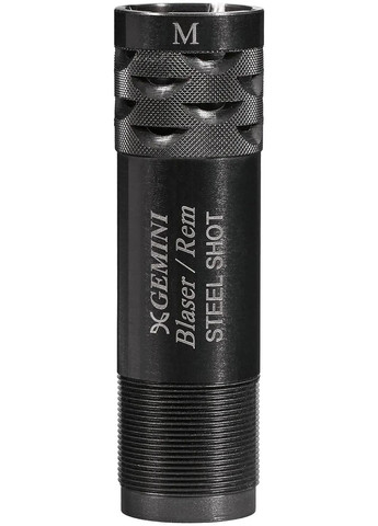 Чоки бренду GEMINI спеціально розроблені таким чином, що розсіювання шротового заряду оптимальне для стрільби на короткі дистанції – до 20 метрів. Розсіювання складає один метр на кожні десять метрів польоту заряду. Чоки добре працюють зі стандартними, мисливськими та спортивними, набоями. Виготовлені з нержавіючої сталі 42CrMo4, як правило, з нікелевим і DLC покриттям. Кожен чок має маркування, яким позначено його звуження та тип шроту, з яким його потрібно використовувати. Чоки розроблені для стволів зі свердленням Optima-Bore HP і діаметром каналу 18,6 мм. Цей різновид стволів відрізняється також подовженою перехідною ділянкою з каналу ствола до дульного звуження.