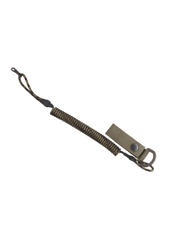 Шнур страхувальний кручений Тренчик-Карабін (паракорд, олива) елемент спорядження, вже давно використовується військовими, мисливцями, будівельниками, альпіністами і туристами. Основа шнура - полімерна мононитка завтовшки 2,5 мм, обтягнута паракордом. Шнур надійний, довговічний і практичний. З одного боку шнура є тренчик з міцної поліамідної стрічки шириною 25 мм Тренчик застібається на кнопку і додатково фіксується липучкою. Він розрахований на максимальну ширину ременя 5 - 5,5 см (портупейний або тактичний ремінь). З іншого боку є металевий карабін, з його допомогою шнур легко прикріпити до пістолета в вушко на рукояті або, якщо є така потреба, пристебнути в'язку ключів, ліхтарик, ніж тощо Страхувальний шнур можна використовувати для кріплення інструментів, доладних ножів, ключів, ліхтариків та ін. Дліна спіралі в стані спокою - 15-17 див. Зовнішній діаметр спіралі - 17 мм, діаметр шнура в перерізі - 3,5 мм. При стрільбі з витягнутою рукою шнур без проблем розтягується на 100 см і більше, після чого повертається у вихідне стан. Завдяки спіральної формою шнур зручний у використанні, так як має компактний розмір в стислому стані.
