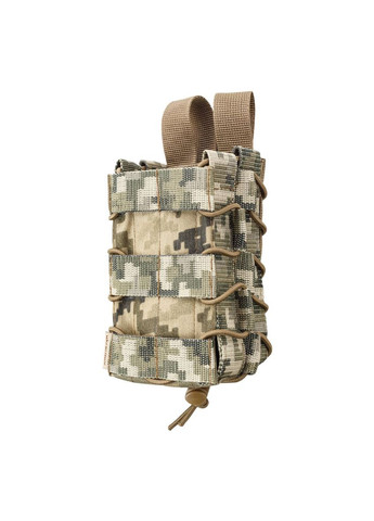 Підсумок дозволяє розмістити одразу два магазини типу АК/АR на одній точковій опорі - це економить місце на вашій плитоносці чи розвантажувальному поясі без втрати бойових властивостей.Завдяки особливій конструкції підсумка, а саме, технології фіксування магазинів тканевою еластичною боковинкою, ви можете на 100% бути впевненими у надійній фіксації Ваших магазинів, не боячись, що при перевертаннях та подібних інтенсивних рухах вони випадуть чи загубляться.*тобто, якщо потрібно крутанути сальто, магазини не випадуть, ми гарантуємо 🤝При цьому, вручну магазини дістаються ну дуже просто, вони не застряють у підсумку, так як робоча поверхня захвату залишається доступною.*це надважливо при активних бойових діях та є однією з основних переваг даного типу підсумків, адже це значно прискорює перезарядку та дозволяє проводити заміну магазинів набагато ефективніше та швидше.Другою, не менш важливою перевагою підсумка із твердою тканинною основою – є його тиша. На відміну від подібних підсмумків з пластиковою основою (на перший погляд вони майже однакові, але ні), данні підсумки беззвучні при діставанні магазину, а є моменти, коли це надважливо.*не вірите нам, запитайте у ССОАвжеж, для максимальної надійності даний підсумок кріпиться на системі MOLLE, що дозволяє його зафіксувати на плитонсоці, розвантажувальній або модульній системах. Але знаючи кмітливість наших воїнів – Ви його зможете розташувати взагалі де завгодно.Виготовлений із матеріалу Cordura 1000 – міцного, зносостійкого та, найголовніше, стійкого до вигорання та деформації матеріалу.Об'єм підсумка регулюється резинкою та фіксатором в нижній частині виробу.Сам підсумок розрахований під два магазини АКМ/АК-47/74 та навіть серії M4/AR15 (про які Ви нас неодноразово просили, ми все пам’ятаємо) і має наступні розміри: 13 х 6 х 7 см.Цей підсумок – відмінний варіант для сучасного, мобільного та ультра-крутого воїна, яким є саме ВИ. А отже, тепер ми знаємо, що саме Вам бракувало.