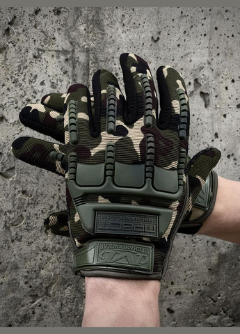 Тактичні рукавички захистять руки від вітру і прохолодного повітря. Зовнішня сторона виконана в комбінації синтетичної рельєфної тканини із синтетичним матеріалом, що нагадує нубук. На зовнішній стороні є додаткові м'які вставки для захисту кісточок руки. В області долонь нашити спеціальні м'які вставки для чіпкості, а також для пом'якшення тиску на долоню. На вказівному пальці передбачено вставку для користування сенсорним екраном вашого гаджета. Матеріал рукавичок злегка тягнеться, тобто на руці сидітиме в обтяжку. Манжет рукавички виконаний з неопрену (тягнеться та зберігає тепло). Фіксується рукавичка на зап'ясті липучкою. Характеристики: - Розмір L: Ширина долоні 10.5 см Довжина середнього пальця 9 см - Колір: камуфляж Колір товару може відрізнятися від кольору на зображенні