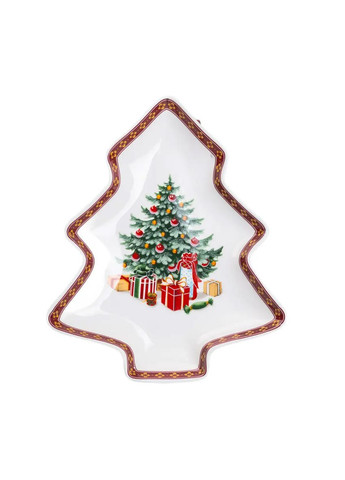Тарілка у вигляді ялинки - це елегантний та практичний елемент сервірування у стилі Різдвяна Колекція. Її компактний розмір дозволяє зручно розташувати різноманітні страви та десерти, створюючи враження обіду у вишуканому ресторані прямо вдома. Основні характеристики тарілки розмір 25.5×21 см; форма: ялинка. Тарілка відрізняється високою міцністю та стійкістю до подряпин, що забезпечує тривалий термін служби. Крім того, вона легко миється, що робить її ідеальним вибором для щоденного використання вдома чи ресторані. Тарілка ідеально підходить для подачі різноманітних страв, від салатів до головних страв завдяки своєму універсальному розміру.