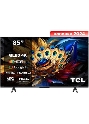 Діагональ екрану, дюйми 85 / Роздільна здатність екрану 3840 x 2160 (4K UHD) / Діапазони тюнера DVB-T2, DVB-C, DVB-S2 / Тип матриці LED / Функції Таймер "Сон"