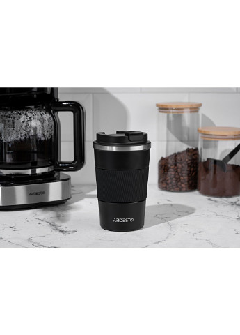Термогорнятко Ardesto To Go 450 мл, Чорне — ідеальний вибір для тих, хто цінує стиль та практичність Термогорнятко Ardesto To Go об’ємом 450 мл — це надійний аксесуар для щоденного використання вдома, в офісі або в дорозі. Завдяки інноваційній вакуумній технології, горнятко здатне зберігати тепло напоїв до 8 годин, а прохолоду — до 12 годин. Це робить його чудовим рішенням як для кави, так і для холодних напоїв. Внутрішні стінки виготовлені з високоякісної нержавної сталі 18/10, що гарантує довговічність і стійкість до корозії. Матова поверхня корпусу у чорному кольорі надає виробу сучасного й естетичного вигляду, а силіконова вставка з текстурою забезпечує зручне та надійне захоплення. Кришка з міцного пластику оснащена силіконовою накладкою та відкидною кришечкою для комфортного використання. Неслизьке дно запобігає перекиданню, забезпечуючи додаткову стійкість на будь-якій поверхні. Термогорнятко не містить бісфенол-А, є повністю безпечним для здоров’я, підходить для миття в посудомийній машині та вирізняється ергономічним дизайном. Це функціональний і стильний аксесуар для тих, хто хоче зберігати напої при потрібній температурі надовго. Переваги: Об’єм 450 мл Збереження температури: до 8 год — гарячі напої, до 12 год — холодні Внутрішній матеріал: нержавіюча сталь 18/10 Матова поверхня у чорному кольорі Ергономічний корпус із силіконовою вставкою Пластикова кришка із силіконовою накладкою та відкидною кришечкою Неслизьке дно Не містить BPA Підходить для миття в посудомийній машині Розміри: 20 x 6,8 см Тип: термогорнятко Термогорнятко Ardesto To Go — ваш ідеальний супутник для активного способу життя.