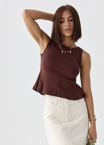 Трикотажний топ з необробленим низом – це стильна та сучасна модель, що поєднує простоту та цікаві деталі. Окантовка на проймах та горловині надає виробу акуратного, завершеного вигляду, підкреслюючи його форму і роблячи силует охайним.
