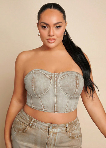 Цей ультра-кроп джинсовий топ має середній колір, дизайн без рукавів та виріз на бретелях. Він може похвалитися бахромою та еластичною тканиною для комфортної посадки. Стиль характеризується своєю сексуальною привабливістю та мікрокропом-довжиною, що робить його ідеальним для літніх модних заходів або фестивалів вуличної музики.