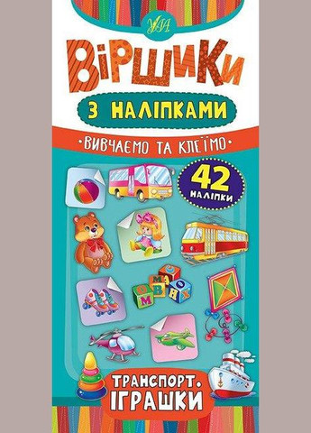 Ця книжка у веселій і цікавій формі познайомить ваших дітей з іграшками й транспортом. Пізнавальні віршики та яскраві картинки допоможуть малюкам легко й швидко, а головне — із задоволенням вивчити назви транспортних засобів й іграшок, а також розвинути зорове сприйняття, уяву та пам'ять. Робота з наліпками неодмінно приверне увагу малюка, урізноманітнить процес навчання та не дозволить нудьгувати.