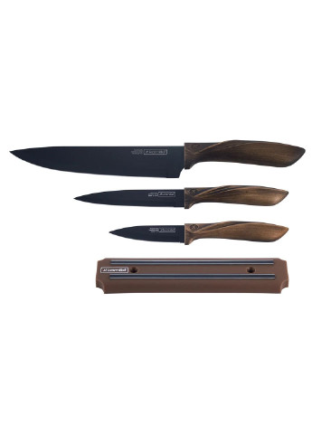 Відправка протягом 1-2 робочих днів. Набір кухонних ножів Kamille Oryen-48 - 3 ножі на магнітній планці. У наборі кухарський ніж (лезо 20см), універсальний ніж (лезо 12.5см), ніж для чищення овочів (лезо 9см). Леза з нержавіючої сталі високої якості. Додаткове покриття сталі виконує антибактеріальні та протилипкі властивості, підвищує антикорозійні властивості сталі. Клинок не взаємодіє з харчовими продуктами, не залишає слідів окиснення, не впливає на їх смак. Рукоятки виготовлені з бакеліту, колір - дерево. Зручної форми, збалансовані, добре сідають у руці і дозволяють вправно орудувати ножем під час роботи з будь-яким типом продуктів. Ножі компактно розташуються на магнітній планці, що прикріплена до стіни. Відмінний спосіб заощадити місце на робочій поверхні. Набір упакований у фірмову коробку. Виробник: Kamille; Посудомийна машина: Ні; Матеріал леза: Сталь з полімерним покриттям; Комплектація: 1 кухарський ніж, 1 універсальний ніж, 1 ніж овочевий, 1 планка; Матеріал: Нержавіюча сталь, бакеліт; Серія: Knife Set KM; Торгівельна марка: Kamille; Розмір виробу: 20 см, 12.5 см, 9 см; Розмір: Кухарський ніж - лезо 20 см, універсальний ніж - лезо 12.5 см, ніж для чищення овочів -лезо 9 см;