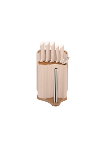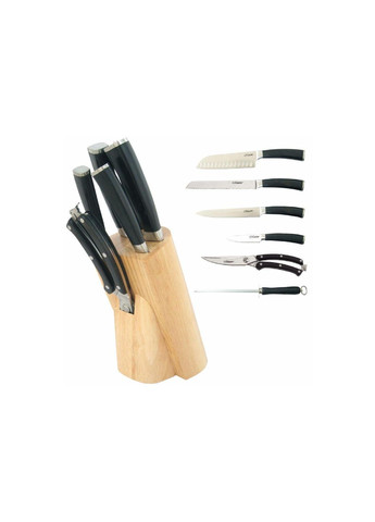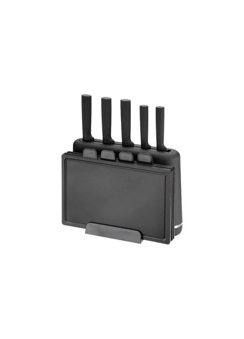 Набір кухонних ножів з підставкою і обробною дошкою Maestro 8 предметів (MR-1413-BLACK) Комплектація: Кухарський ніж 8’’ Хлібний ніж 8’’ Універсальний ніж 8’’ Ніж загального призначення 5’’ Ніж для чищення овочів 3,5’’ Овочечистка Підставка для ножів Тримач для паперових рушників Обробна дошка Характеристики: Кількість предметів: 8 Матеріал лез: високоякісна нержавіюча сталь Матеріал ручок: пластик з покриттям Soft Touch Тип заточки: професійна, лазерна Колір: чорний Набір кухонних ножів Maestro MR-1413-BLACK створений для тих, хто цінує поєднання функціональності та елегантного дизайну. Кожен ніж виготовлений з високоякісної нержавіючої сталі, що забезпечує ідеальну гостроту, міцність і тривалий термін служби. Завдяки ергономічним ручкам з покриттям Soft Touch ножі зручно тримати, вони не ковзають навіть при інтенсивному використанні. До набору входить стильна підставка для компактного зберігання, тримач для паперових рушників і обробна дошка, яка не притуплює леза. Комплект виконаний у глибокому чорному кольорі — це елегантне рішення для будь-якої кухні, яке поєднує практичність і сучасний стиль. Переваги: Міцні та гострі леза. Виготовлені з нержавіючої сталі, що зберігає гостроту надовго та не піддається корозії. Зручні ручки Soft Touch. Забезпечують комфортний і безпечний хват навіть під час тривалого використання. Комплексне рішення для кухні. Повний набір ножів, овочечистка, підставка, дошка та тримач рушників. Стильне виконання. Чорний колір додає витонченості та пасує до будь-якого інтер’єру. Професійна заточка. Дозволяє легко і точно нарізати будь-які продукти. Набір ножів Maestro MR-1413-BLACK стане чудовим вибором для сучасної кухні. Його зручно використовувати щодня, а завдяки стильному дизайну він також підійде як подарунковий набір ножів для родини або друзів. Усі елементи набору гармонійно поєднані, створюючи практичний і красивий аксесуар для вашого дому. Якщо ви шукаєте набір кухонних ножів Maestro чорного кольору, набір ножів з підставкою або набір ножів із нержавіючої сталі — модель MR-1413-BLACK стане ідеальним варіантом. Вона поєднує надійність, комфорт і естетику в одному комплекті. Цей набір стане не лише практичним помічником, але й стильним акцентом у вашому кухонному просторі. Купити набір ножів Maestro MR-1413-BLACK в Україні можна в нашому інтернет-магазині за вигідною ціною. Це якісний набір кухонних ножів із підставкою та обробною дошкою, який поєднує зручність і довговічність.