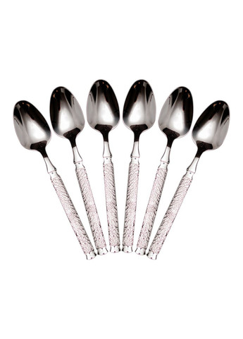 Нехай кожна трапеза буде не тільки смачною, але й естетично приємною — виберіть якісні столові прилади, які підкреслять стиль вашого сервірування і прослужать довго. Набір столових ложок включає 6 предметів у блістерній упаковці. Класичний дизайн в сріблястому кольорі надає приладам елегантний і витончений вигляд. Завдяки стриманому оформленню ложки легко поєднуються з різним посудом і столовими приладами, підійдуть як для повсякденного використання, так і для святкового сервірування. Основні характеристики: Кількість предметів в наборі: 6 шт.; Кількість персон: 6; Довжина: 21 см; Матеріал: нержавіюча сталь; Упаковка: пакет. Ложки виготовлені з міцної нержавіючої сталі, стійкої до корозії і механічних пошкоджень. Глянцева поверхня спрощує догляд, а ергономічна форма ручки робить використання максимально комфортним. Такий набір стане відмінним вибором для тих, хто цінує якість, практичність і стиль. Столові ложки прослужать довго, зберігаючи свій зовнішній вигляд і зручність у використанні, а їх універсальний дизайн вдало впишеться в будь-який інтер'єр кухні або їдальні.