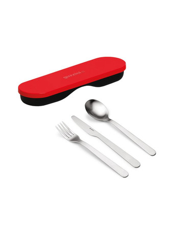 Набір столових приладів Guzzini On the Go Столові прилади Guzzini On the Go виготовлені з високоякісної нержавіючої сталі. Набір на 1 персону містить усі необхідні прилади. Прямі ручки та строга форма - відмінна риса даного набору. Підходить для миття у посудомийній машині. Характеристики: Тип: набір столових приладів Матеріал: нержавіюча сталь Матеріал футляра: пластик Кількість предметів: 4 Кількість персон: 1 Розмір: 19x5,5x2 см Колір: сріблястий Колір футляра: червоний Серія: On the Go Виробник: Guzzini Склад набору: Ніж столовий: 1 шт Вилка столова: 1 шт Ліжка столова: 1 шт Футляр