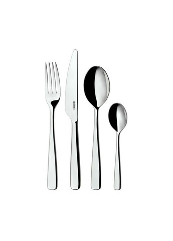 Набір столових приладів Guzzini Steel 17690063 Столові прилади Guzzini Steel 17690063 виготовлені з високоякісної нержавіючої сталі. Набір на 6 персон включає всі необхідні прилади. Підходить для миття в посудомийній машині. Характеристики: Тип: набір столових приладів Матеріал: нержавіюча сталь Кількість предметів: 24 Кількість персон: 6 Колір: сріблястий Колір ручки: сріблястий Серія: Steel Виробник: Guzzini Склад набору: Ніж столовий: 6 шт Вилка столова: 6 шт Ложка столова: 6 шт Ложка чайна: 6 шт