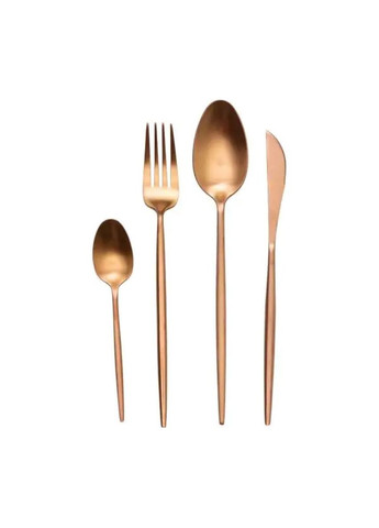 Набір столових приборів бронзового кольору складається з 24 предметів: 6 столових ложок, 6 чайних ложок, 6 виделок і 6 столових ножів. Кожен предмет має класичний дизайн без зайвих декоративних елементів, що робить їх універсальними для щоденного використання або сервірування святкового столу. Столові прибори мають гладку поліровану поверхню, яка легко очищається і не затримує забруднення. Основні характеристики: Кількість предметів у наборі: 24 шт; Кількість персон: 6; Матеріал: нержавіюча сталь; Упаковка: коробка; Розміри приладів: довжина столового ножа: 21.5 см; довжина столової ложки: 22.5 см; довжина столової виделки: 22 см; довжина чайної ложки: 14.5 см. Комплектація набору: столовий ніж: 6 шт; столова ложка: 6 шт; столова виделка: 6 шт; чайна ложка: 6 шт. Матеріал виготовлення - нержавіюча сталь, яка вирізняється міцністю, стійкістю до корозії та довговічністю. Леза ножів мають заточену кромку, що забезпечує зручне нарізування продуктів. Вилки та ложки мають ергономічну форму, що сприяє комфортному утриманню в руці під час прийому їжі. Усі предмети набору можна мити в посудомийній машині без ризику втрати блиску або пошкодження поверхні. Комплект поставляється в базовій упаковці, яка захищає прилади від механічних пошкоджень під час транспортування. Набір підходить для використання в домашніх умовах, закладах громадського харчування або як варіант для тимчасового житла. Завдяки стандартним розмірам і нейтральному дизайну ці столові прибори легко поєднуються з різними стилями посуду та текстилю для сервірування столу.