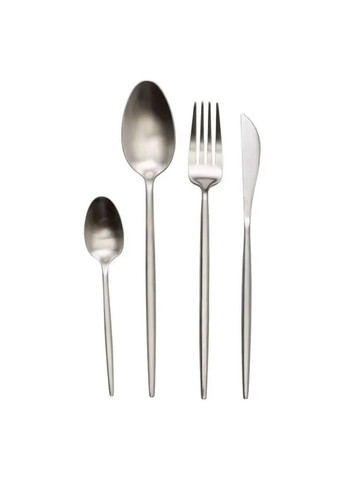 Набір столових приборів сріблястого кольору розрахований на 6 персон і включає 24 предмети: 6 столових ложок, 6 чайних ложок, 6 виделок і 6 столових ножів. Класичний дизайн без зайвих декоративних елементів робить його універсальним для повсякденного використання та святкового сервірування. Завдяки збалансованій вазі та ергономічній формі прилади зручно лежать у руці. Основні характеристики: Кількість предметів у наборі: 24 шт; Кількість персон: 6; Матеріал: нержавіюча сталь; Упаковка: коробка; Розміри приладів: довжина столового ножа: 23.7 см; довжина столової ложки: 20.5 см; довжина столової виделки: 20.5 см; довжина чайної ложки: 15 см. Комплектація набору: столовий ніж: 6 шт; столова ложка: 6 шт; столова виделка: 6 шт; чайна ложка: 6 шт. Виготовлені з неіржавкої сталі, вони вирізняються стійкістю до корозії, механічних пошкоджень і потьмяніння. Полірована поверхня надає привабливого вигляду і забезпечує легке очищення. Леза ножів мають оптимальну гостроту для комфортного нарізування, а форма ложок і виделок сприяє зручному прийому їжі. Набір підходить для домашнього використання, закладів громадського харчування або як подарунковий варіант. Усі предмети можна мити в посудомийній машині без ризику втрати блиску або пошкодження матеріалу. Завдяки стандартним розмірам і нейтральному дизайну комплект легко поєднується з різними стилями посуду.