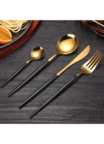 Набір столових приладів із 4 предметів. Прилади виконані з нержавіючої сталі із сріблястим покриттям та дзеркальним поліруванням. Елегантний дизайн приладів приверне увагу та стане доповненням під час сервірування як святкового, так і повсякденного столу. Вони не схильні до утворення корозії і легко миються.