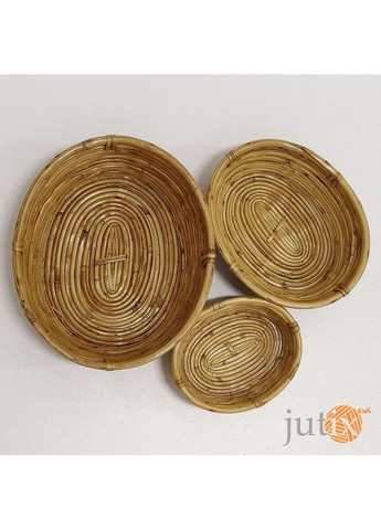Лоток овальний бамбуковий. Матеріал: лоза бамбука. У комплекті 3 лотки: малий, середній і великий. Розмір: Довжина: малий 16 см, середній — 19 см, великий — 24 см. Ширина: малий 13 см, середній — 16 см, великий - 20 см. Висота: малий — 5 см, середній — 6 см, великий — 7 см.