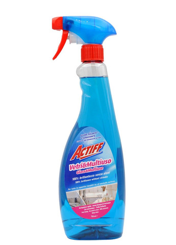 Бажаєте швидко очистити вікна не залишаючи розводів? Цей засіб знйдено! Пропонуємо спробувати універсальний спрей Actiff Verti & Multiuso Spray. Засіб має очищаючу та знежирюючу дію. В складі містить нашатирний спирт. Не залишає слідів на 100% . Переваги: - швидке висихання - без необхідності змивання - блискуча чистота - для всіх поверхонь ,які можна мити Можна викоритовувати на скляних ,керамічних, сталевих ,пластикових і лакованих меблях. Пляшка на 50 % складається з переробленого пластику!